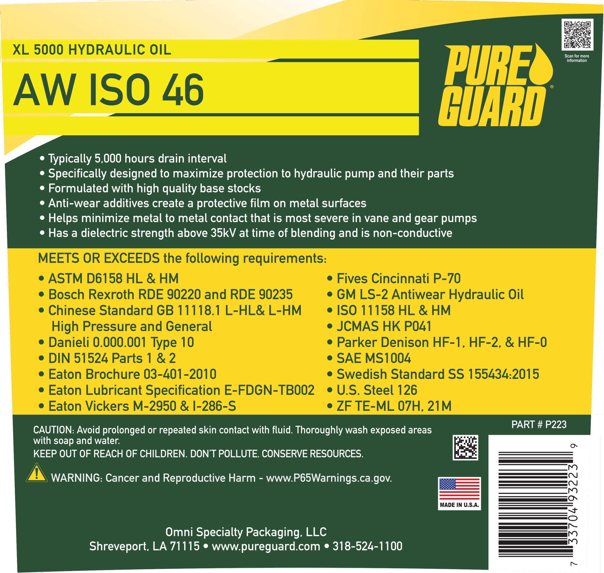 XL AW ISO 46 Hydraulic Oil is recommended for hydraulic systems that have vane, piston, or gear type pumps, and particularly where pressures exceed 1000 psi.